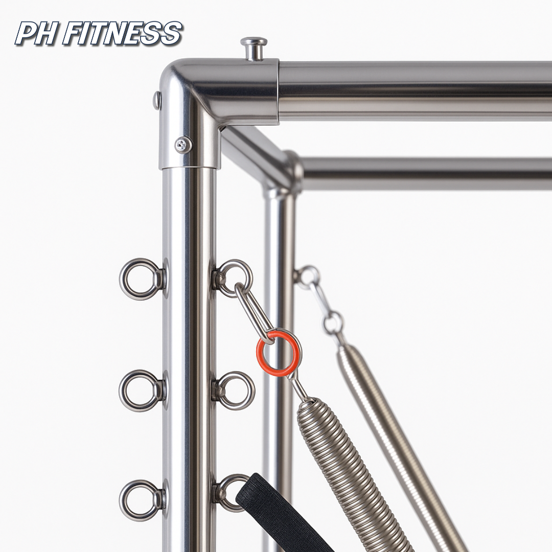 Upgrade jouw Pilates-ervaring met de PH Fitness Cadillac Tower, ontworpen voor maximale stabiliteit, vloeiende bewegingen en langdurig gebruik. Dit model is gebouwd met hoogwaardige materialen zoals massief hout, roestvrijstalen frames en premium bekleding. Ideaal voor zowel beginnende als professionele Pilates-instructeurs.